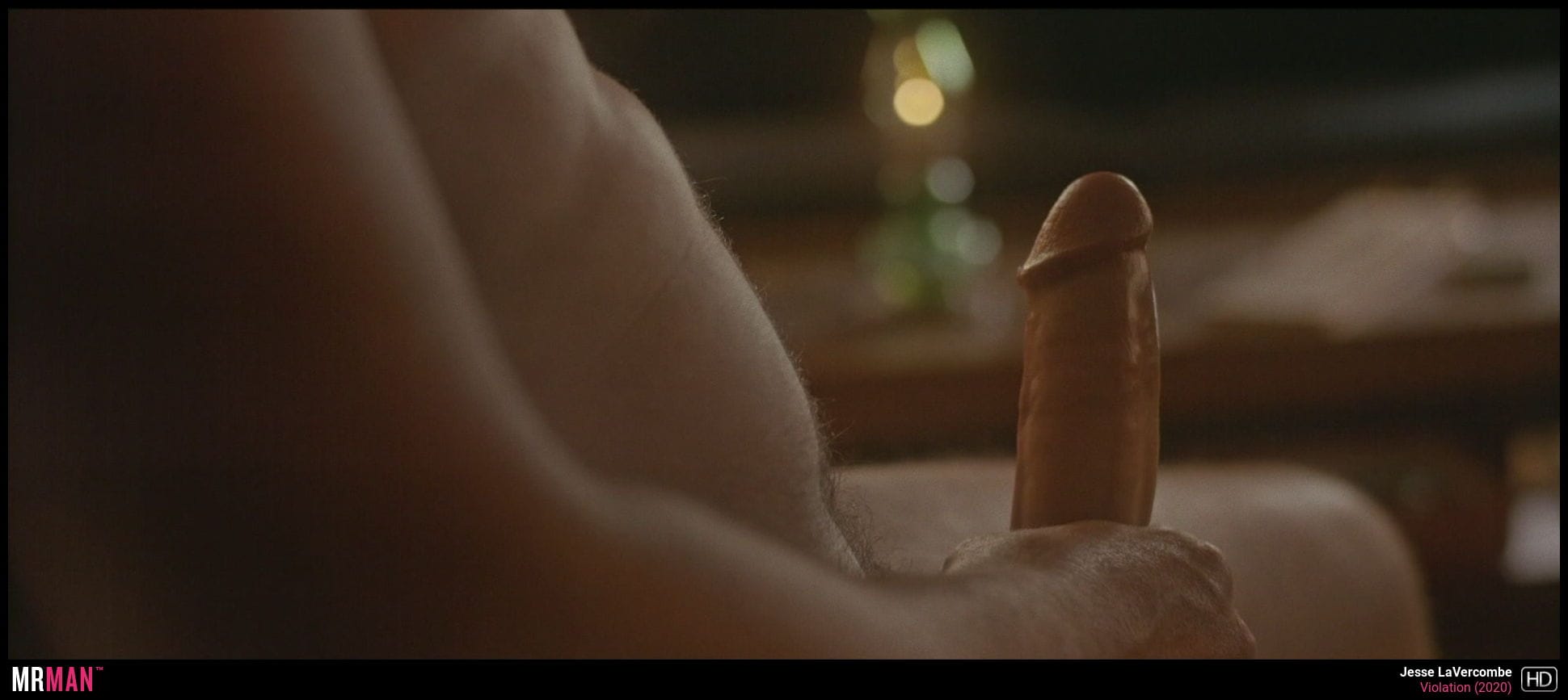 Not only is this mild-mannered actor fully erect for his role in this horror flick, but you can actually see his cock pulsing up and down with excitement as he’s teased by a woman while blindfolded.