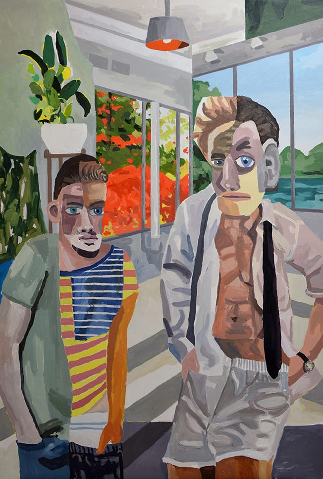 I have been fortunate to do a couple of commissions. As a collagist to do a commission it helps to have lots of images at my disposal. I was commissioned by Barrie Drewitt-Barlow to make a painting of his eldest adult twins Saffron and Aspen. They are renowned as being Britain's first surrogate babies born to a same sex couple. This was a lot of fun as I just collaged loads of their instagram into a double portrait of them. It was a private commission but I then had the opportunity last year to show the portrait as a centrepiece to a solo show I had at Firstsite, Colchester. I made the painting in 2019, so it was great to have the opportunity to share it with the public.
