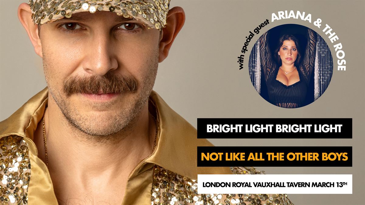 Bright Light Bright Light returns to the UK with his one-man-show that has become a staple at new York City’s acclaimed Joe’s Pub, taking you on a rollercoaster ride through his extensive back catalogue including 2024’s Top 10 album ‘Enjoy Youth’. Join him for a joyful and euphoric evening of his cinematic, colourful dance pop music, stories behind the songs and a torchsong moment or two from his more emotional deep cuts. He’s also bringing his good friend and fellow New Yorker Ariana & The Rose whose songwriting and storytelling is fabulous, feisty and unforgettable. Doors at 6pm, performances from 7pm. Curfew 9.30pm ALSO FOR ALL TICKET HOLDERS: at 9.30pm the event turns into Groovalicious: London’s Queer Disco.All ticket holders are welcome to stay for the night’s event, so you get two events for the price of one. From Groovalicious: We’re proud to host the official afterparty for Bright Light Bright Light at the Royal Vauxhall Tavern.Resident DJ’s - Richie Rich and Aliway bring a focused night of pure Disco House — classic anthems and Nu Disco, all remixed for some serious dancing.Rooted in our queer community and open to allies, Groovalicious is a space to come as you are, lose yourself in the music, and move with a room full of like-minded people.No gimmicks. Just proper Disco House. Come feel the vibe. Your Disco is Calling. PLEASE NOTE: This event will be mostly standing with only a very few seats in the venue, first come first serve. If you have access questions please contact dave@vauxhalltavern.com. ALL BAGS AND COATS MUST BE CHECKED IN TO CLOAKROOM DANCING ON THE STAGE IS AT YOUR OWN RISK The RVT is an LGBTQ+ venue, please respect our space. No hen/stag parties