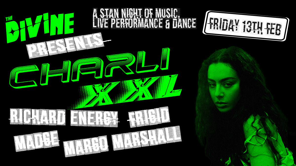 The Divine presents… CHARLI XXLA stan night of music, live performance and dance celebrating the diverse brilliance of Charlie XCX throughout all the era’s of her career. From CHARLI to BRAT and on to WUTHERING HEIGHTS we’ve got you covered…. PLUS pop-ups from her dynamic duets with TROY SIVAN & BILLIE EILISH. . This is an XXL CHARLI CABARET MOMENT starring the best in the BIZNESS…. ⭐ MARGO MARSHALL ⭐ RICHARD ENERGY ⭐ LALA DANGEREUSE⭐FRIGID ⭐ MADGE playing the keys & singing LIVE. Tickets are limited and gain you entry into a 2-floor pop party with more random shows and bangers all night long.Come on and be part of this MOMENT XCX Tickets £8 / £10 Divine Doors 5pm Cabaret doors 7.30pm Show 8pm Finish 9.30pm Pop party ‘til 3am ACCESS:Sadly, both floors of The Divine are not currently accessible as we do not have a lift.– The ground floor, main bar of The Divine has level access.– There is an accessible toilet in the main bar.– The cabaret and club space are in the basement of the venue. There is no lift.– There are 17 wide steps down to the basement with handrails on either side, this is where the show will take place.– There are two sets of gender-neutral toilets downstairs, they are not wide enough for wheelchairs.If you need further information, please refer to The Divine ‘About’ page on the website. www.thedivine.co.uk or email us direct on info@thedivine.co.ukPlease note The Divine is a queer venue run by queer people, for queer people and their allies. We operate a zero-tolerance policy towards homophobia, transphobia, racism, misogyny and discrimination of any kind. Be respectful or you will be asked to leave. Strictly no office, hen or stag parties allowed.