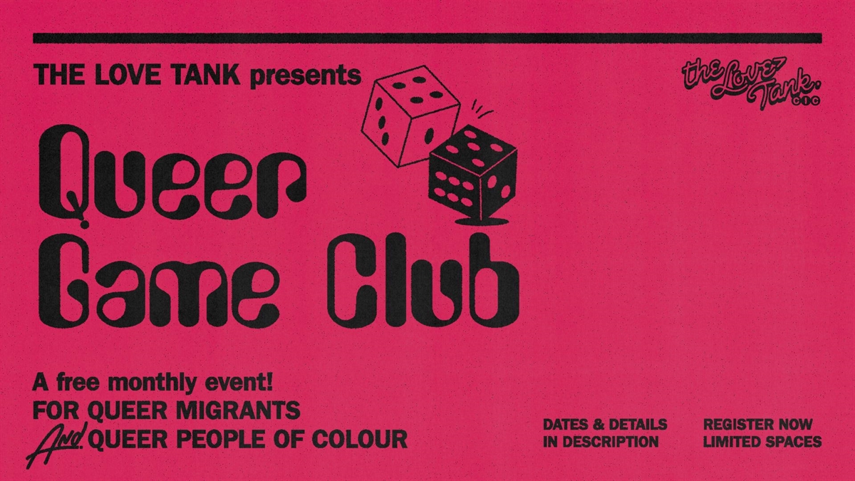 🎲 Queer Game Night: Let the Games Begin. 🎮Grab your tokens, shuffle your cards, and get ready for a night of games, snacks, and queer joy. This Queer Game Night is for queer migrants and queer people of colour, so bring your best game face and let’s play. 🌈 ⚠️⚠️⚠️ IMPORTANT ⚠️⚠️⚠️Plans changed? Let us know or cancel your ticket. No-shows aren’t sexy and stop others from joining. Repeat no-shows won’t get future bookings. 🗓 Date: Thursday, 17th of February 2026📍 Location: The Green House, Bethnal Green, London⏰ Time: 6:00 PM doors, 6:15 PM game starts💸 Cost: FREE Whether you’re a board game newbie or a seasoned pro who always “accidentally” wins at Monopoly, this night is for you. We’ll have some games ready, and you can also bring your own favorites to share. Snacks and refreshments will keep your energy up, no matter how intense the competition gets. What’s in store?🎲 Meet amazing people and maybe even new gaming buddies🎉 Level up your social skills IRL🥂 Gobble snacks like Pac-Man🩺 Bonus treasure: Grab free sexual health resources and STI self-test kits to take home Accessibility: The venue is wheelchair accessible, so no obstacles to fun here. Spaces are limited, so don’t miss out. Bring your A-game (or just your love of snacks) and let’s have a blast. 💌 Questions? Send us a message. We can’t wait to play with you. Stay Connected: Follow us on Instagram @thelovetankcic for updates on this event and other exciting free projects and events you can be a part of. About our FREE events💜 Our events are free to ensure they remain accessible to our communities. However, organizing them comes with costs. If you’d like to support our work, please consider donating via this link. 💜 To make sure as many people as possible can attend, we ask that you cancel your ticket if you can no longer make it. Failing to show up without prior cancellation takes a spot from someone else and wastes resources, including food and venue costs. We track attendance, and individuals who miss three events without cancelling will be unable to register for our future events. Please be considerate and let us know if you can’t attend. 💜 To ensure a smooth and respectful experience for everyone, please arrive on time. Our events are not drop-in sessions, meaning attendees must arrive at the start time and stay for the duration. We allow a 10-minute grace period for late arrivals - after that, entry will not be permitted as it can be disruptive to the group. Additionally, the entrance is not monitored after the grace period, so there will be no one available to let latecomers in. The event hours are clearly stated in the description, so please plan accordingly. Thank you for understanding and helping us create a welcoming space for all. 💜 Alongside this, we appreciate it if you could respond to any communication by the given response deadline so we can make the necessary arrangements for the event. 💜 By signing up to this event, you accept being added to The Love Tank’s newsletter. You can opt out at any time.
